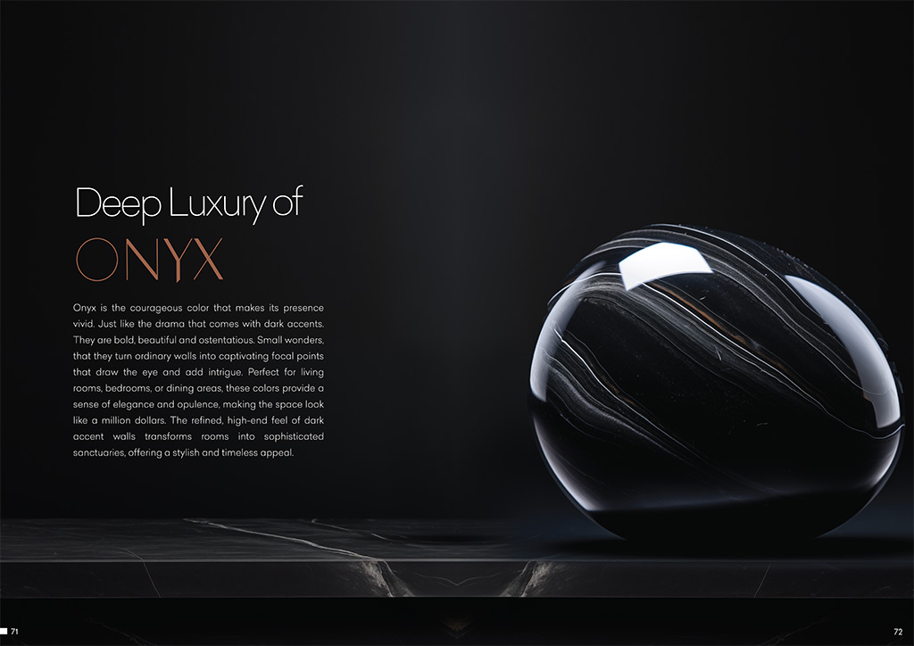 Onyx is the courageous color that makes its presence vivid. Just like the drama that comes with dark accents. They are bold, beautiful and ostentatious, Small wonders, that they turn ordinary walls into captivating focal points