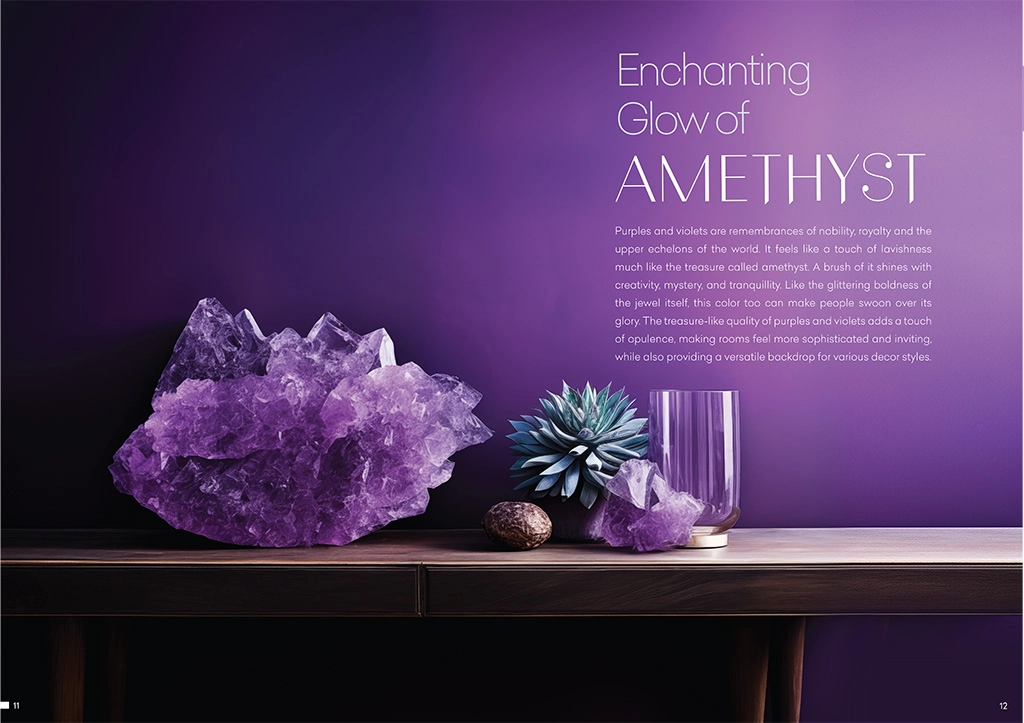 Purples and violets are remembrances of nobility, royalty and the upper echelons of the world. It feels like a touch of lavishness much like the treasure called amethyst. A brush of it shines with creativity, mystery, and tranquility.