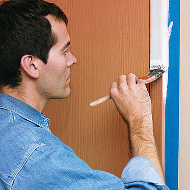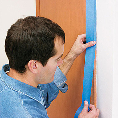 Mask any surfaces not to be painted, such as door & windows casings, with blue painter’s tape.