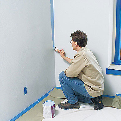 Mask off the baseboards with 12-inch baseboard masking, overlapping the floor drop cloth. (Clean the baseboards before taping to ensure good adhesion).