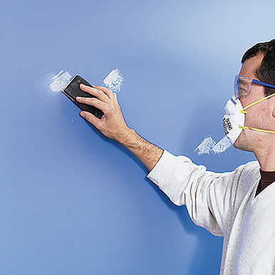 Let the crack filler dry according to the manufacturer’s instructions, then sand the wall using a sanding block with 220-grit sandpaper.