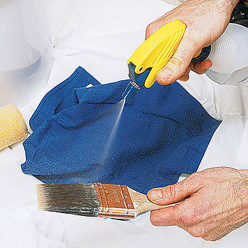 Prime the roller cover and cutting-in brush by wetting with a misting bottle. Remove excess water before applying paint.