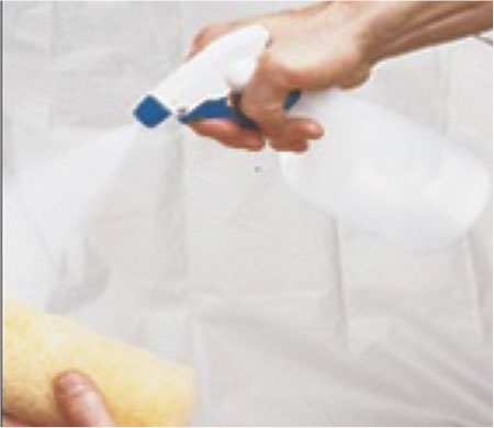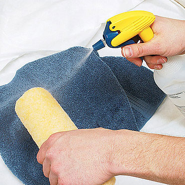 Prime the roller cover and cutting-in brush by wetting with a misting bottle. Remove excess water before applying paint.
