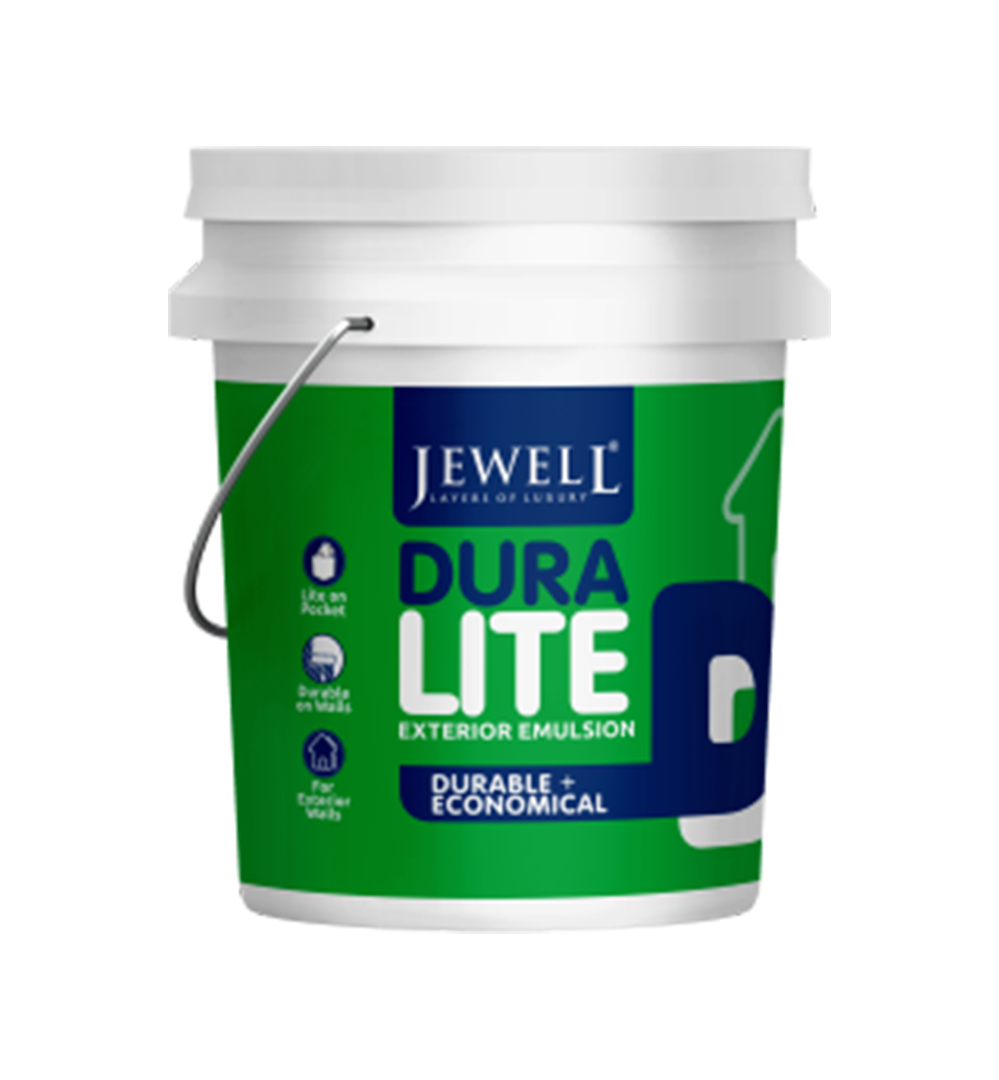 Dura Lite Exterior Emulsion is suitable for dry to moderately humid climatic conditions. The product has good resistance to peeling, chalking and weathering on prolonged exposure. In addition, its special formulation delivers good coverage or spreading rate compared to other ordinary emulsions.